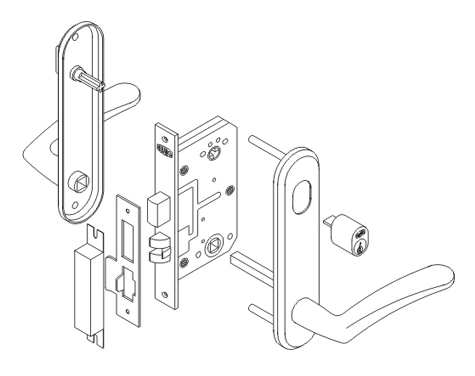 Замок для судовой кабины модель С1-С.D, нержавеющая сталь, ключ-завертка (сторона открытия правый на себя D R.o)