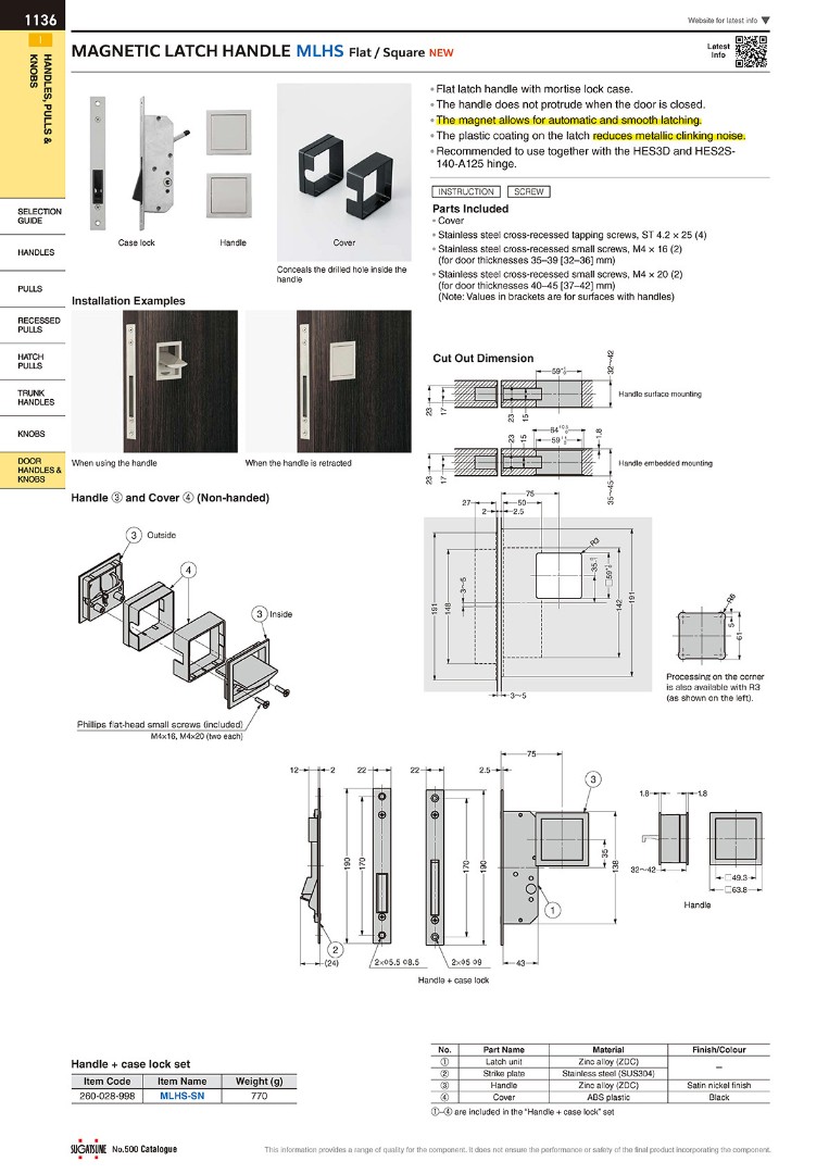 (Примечание: Значения в скобках указаны для поверхностей с ручками) - В сочетании со скрытыми петлями серии HES можно создать современный и лаконичный дизайн двери. Магнитное притяжение автоматически фиксирует дверь, обеспечивая плавное и бесшумное открывание и закрывание. Кроме того, защелка с полимерным покрытием исключает любые металлические звуки, обеспечивая тихую работу.