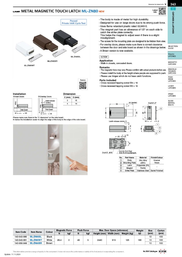 Магнитная защелка ML-ZN80WT, корпус сталь цвет черный.