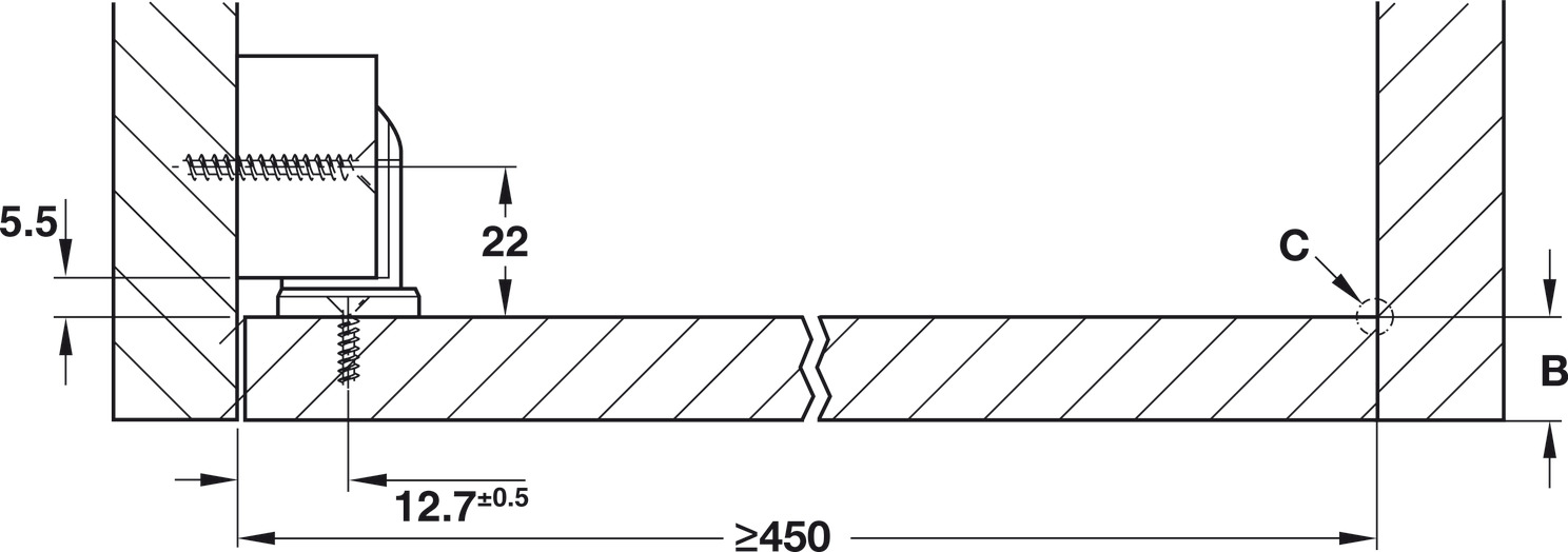 Монтажную планку можно прикрутить к противоположной стороне с помощью мебельной ручки (расстояние между отверстиями 32 мм).