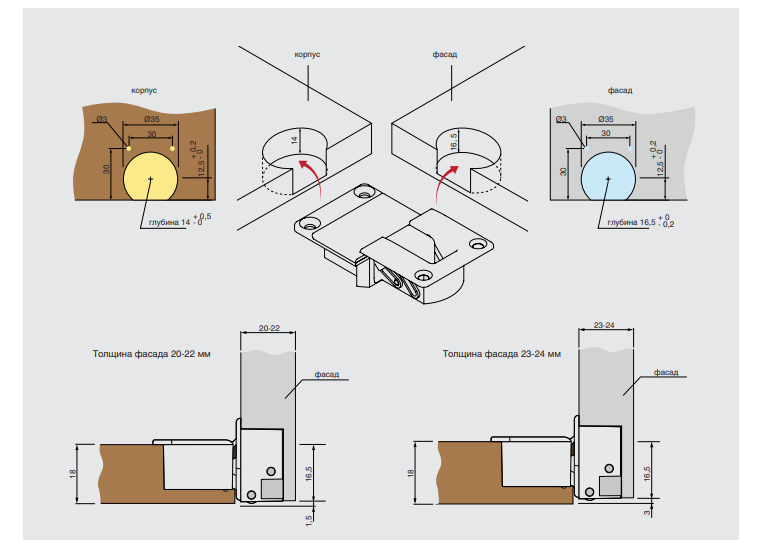 Фрезеровка под чашку петли (Ø, мм)