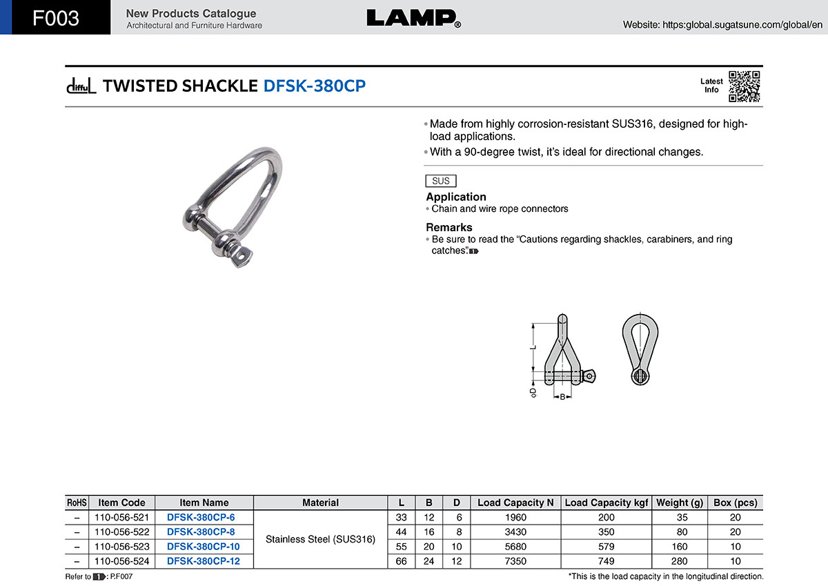 Скоба крученая DFSK-360CP-8 нержавеющая сталь SUS316, L=44 мм. нагрузка до 350 кг.