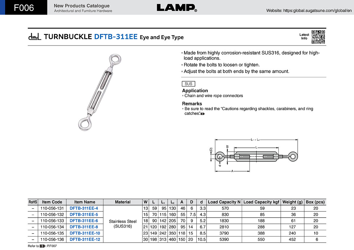 Талреп DFTB-311EE-8 нержавеющий открытый, L=280 мм.