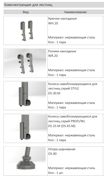Ножки лестниц оснащаються шарнирными опорами или самоблокирующимися колесами.