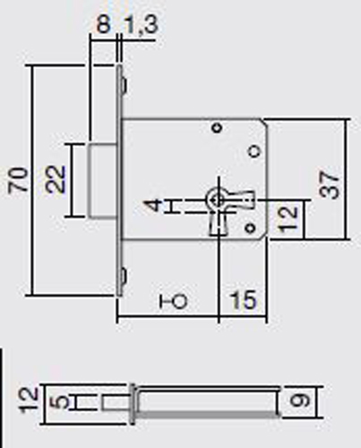 Врезной левый замок HUWIL D=12,5 мм. Тип 0003 закругленная ответная планка, латунная вороненая