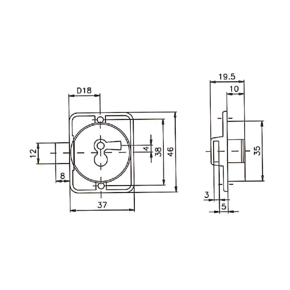Врезной левый замок-защелка HUWIL Тип 0355 для ящиков - D18 английский коричневый