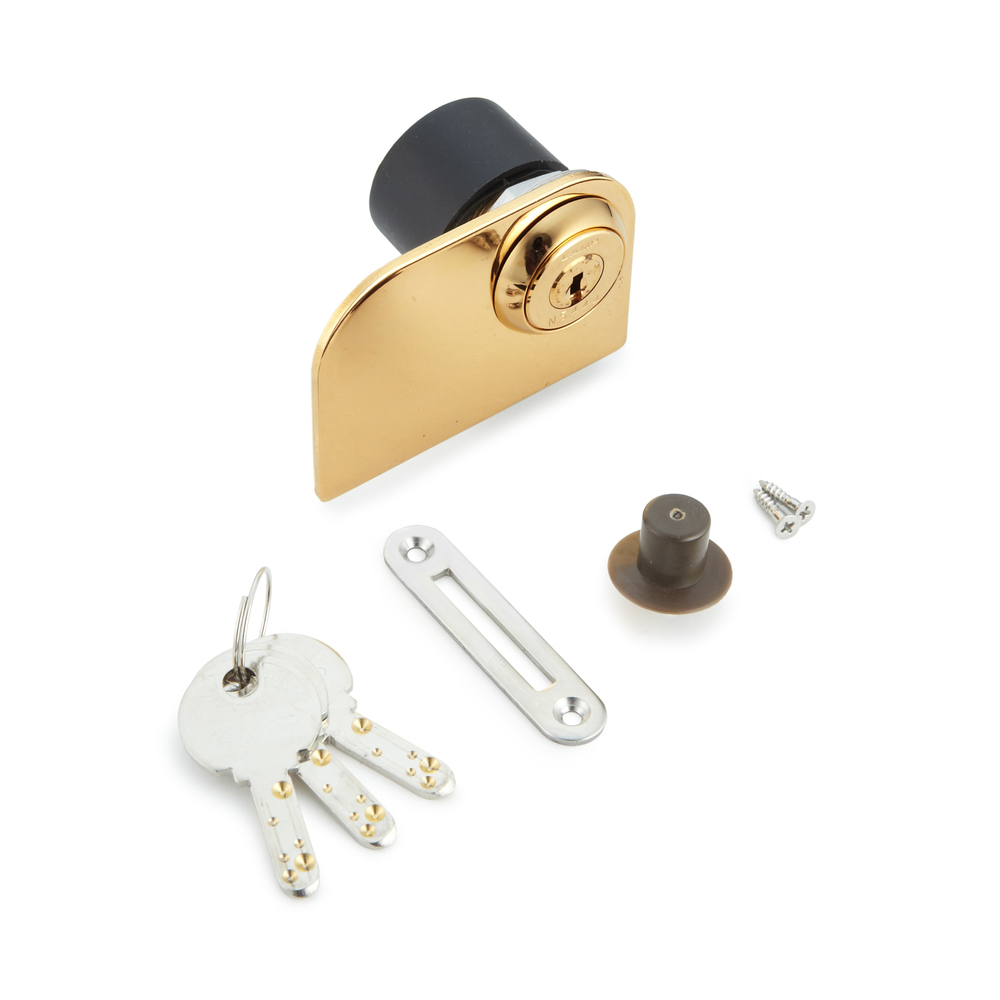 Замок для стекла толщиной 5-8 мм, Sugatsune модель 1310GLW-GC-B цвет золота (угол поворота ключа 90°, разная комбинация ключей)