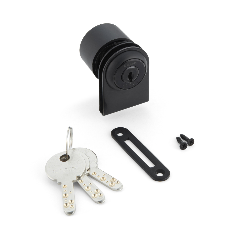 Замок для стеклянных витрин, Sugatsune модель 1310GL-BL-B цвет черный (угол поворота ключа 90°, разная комбинация ключей)