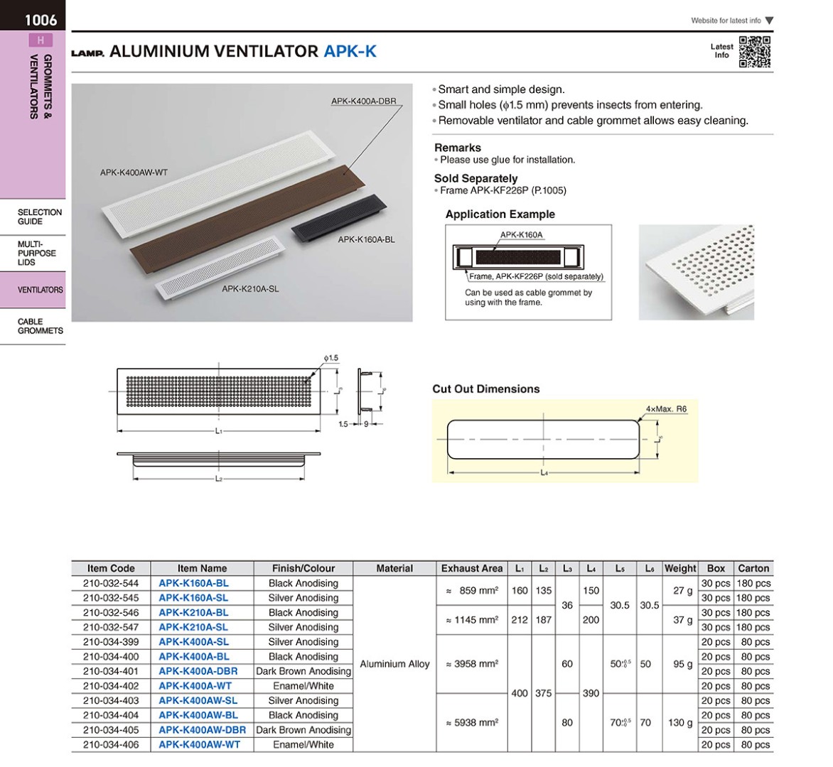 Вентиляционная решетка APK-K160A-SL размер 160х36 мм. (алюминий цвет алюминий, пропускная способность 859 мм³) Sugatsunе Япония