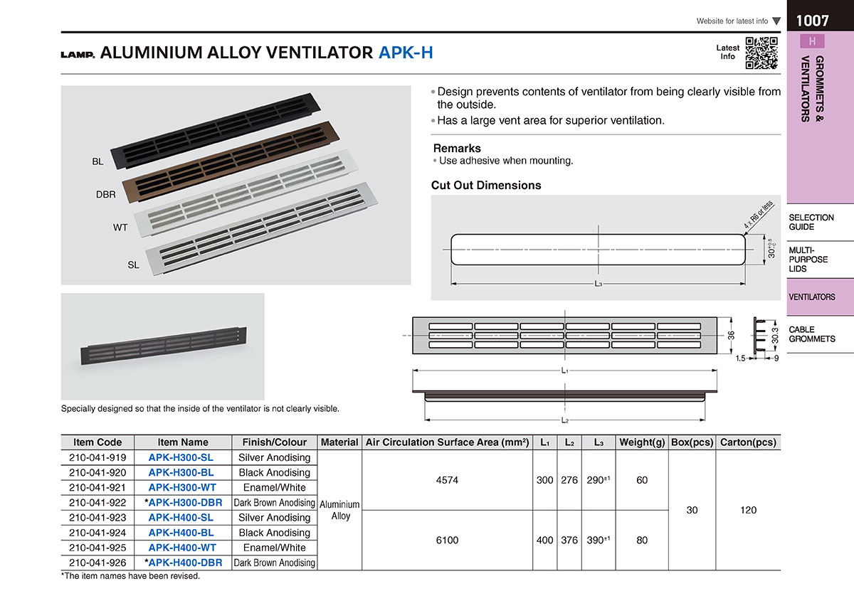 Вентиляционная решетка APK-H400-BL размер 400х80 мм. (алюминий цвет черный, пропускная способность 6100 мм³) Sugatsunе Япония