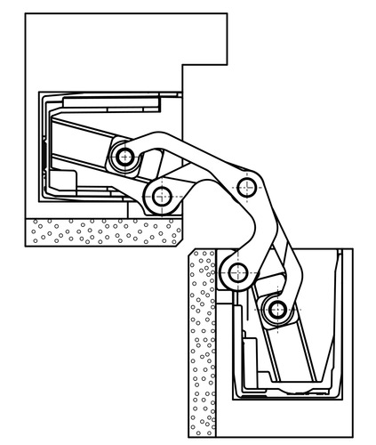 Состоят из двух частей: каркасной и дверной, которые соединены между собой шарнирными рычагами. Такое строение делает петли незаметными в закрытом состоянии, а при открытии видны только сами рычаги.