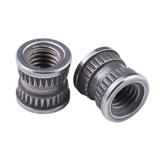 Использование точения из углеродистой стали цилиндрической формы, середина наружного диаметра меньше и с цветочным зубом гайки с отверстием, структура литья под давлением к пластику может значительно увеличить его адгезию и несущую способность, в автомобильных деталях в большом количестве использования. Различные спецификации таких деталей могут быть обработаны в соответствии с требованиями.
