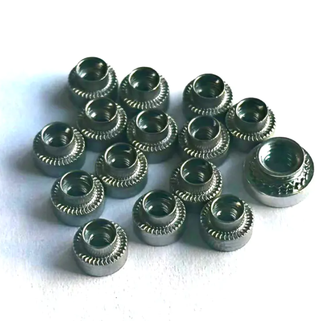 Изготовлен из углеродистой стали 10 # методом холодной прошивки, своего рода гайка по индивидуальному заказу, которая устанавливается в отверстие детали из листового металла, а затем фиксируется на детали из листового металла с помощью пресс-клепки круглой трубки головки гайки, чтобы сделать он поднимается и деформируется. Детали этого типа могут быть обработаны в соответствии с требованиями.