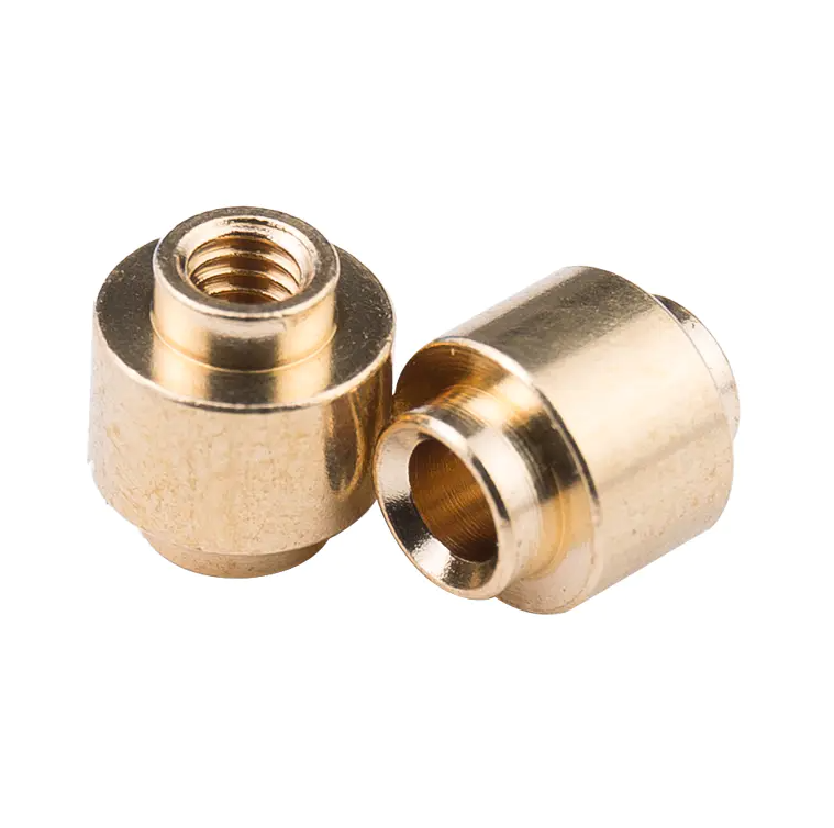Использование токарной обработки медного материала, выполненной из своего рода внутренней винтовой резьбы, используемой для клепки под давлением в отверстии в тонких металлических частях крепежных деталей, тип гайки не подвержен ржавчине, коррозии, легкой теплопроводности, прочный. электропроводность и другие преимущества, обычно используемые в электронном оборудовании. Может быть обработан в соответствии с потребностями различных спецификаций таких деталей.