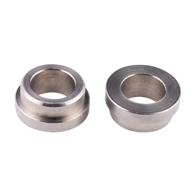 Выточена из углеродистой стали втулка округлой и ступенчатой ​​формы, напоминающая букву «Т», если смотреть сбоку. Используется в сочетании с вращающимся валом на определенном оборудовании. Различные спецификации этих деталей могут быть обработаны по запросу.